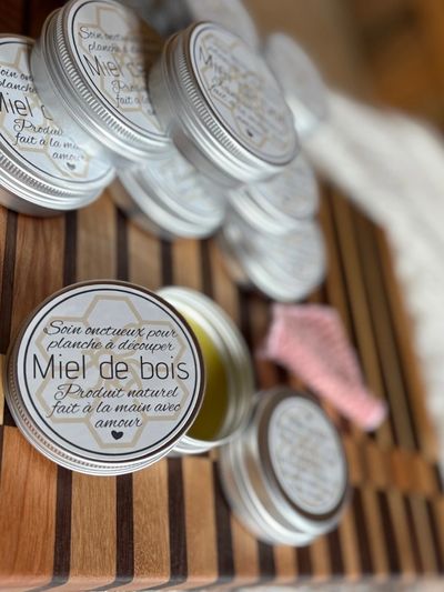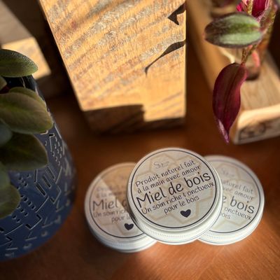 Je recommande soit de l’huile minérale, soit mon Miel de bois — un petit mélange maison que j’ai développé pour nourrir et protéger le bois comme il le mérite.